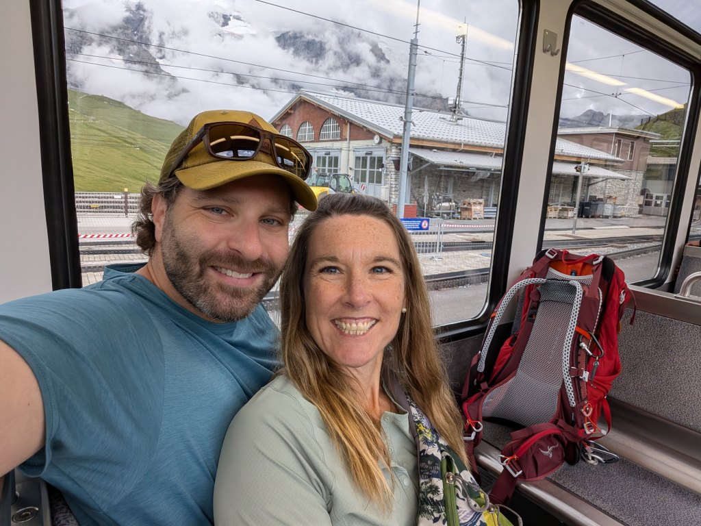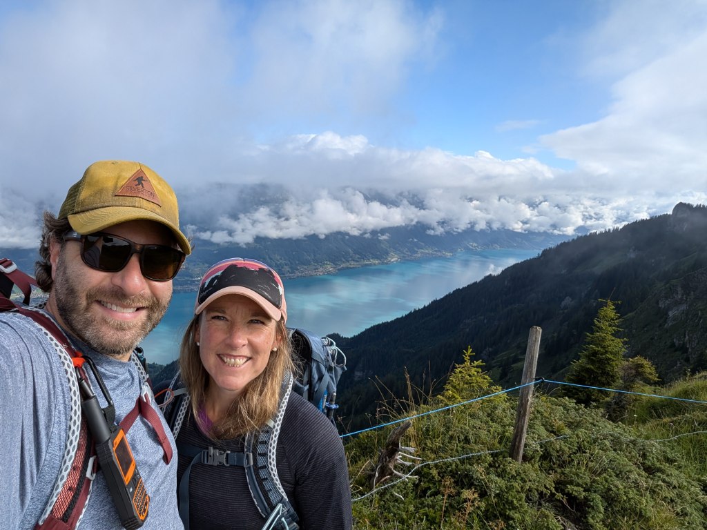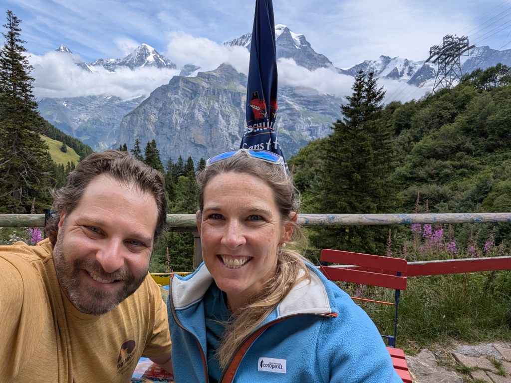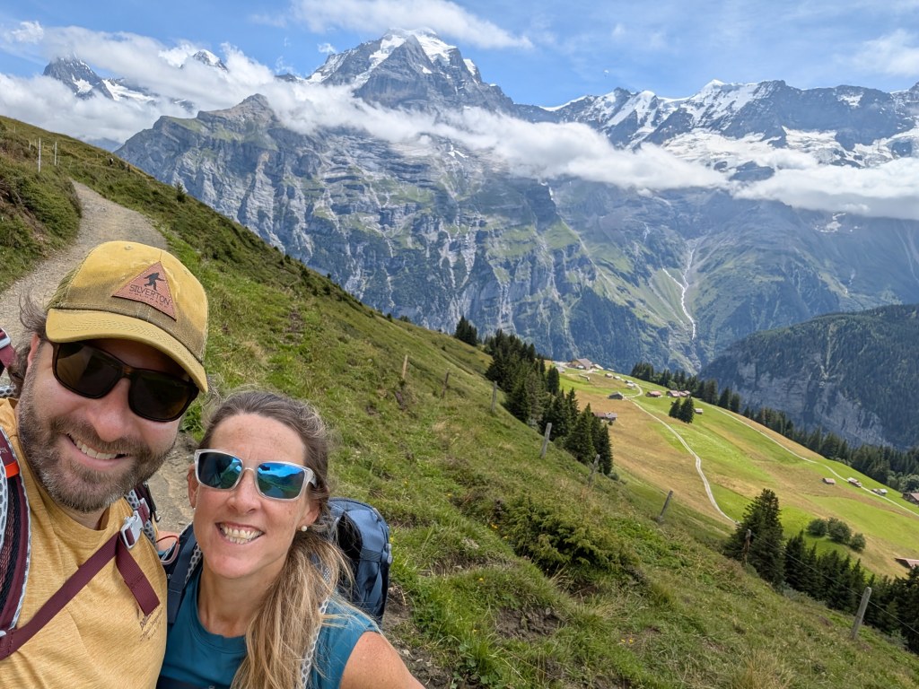 10.5 mi, 2300 ft up and 2800 ft down. We took the packed train of eager hikers early in the morning from Wengen to Schynige Platte. The ride up the mountain was pretty underwhelming as you couldn’t see a thing out the windows, just clouds and clouds. When we got to the top of the platform, the peaks started to poke out and blue sky. A local said to us, ” just wait ten minutes and the views will change.” We may have not seen the amazing jaw dropping views that we were supposed to see on the cliff walk of the mountain, but we still saw some pretty sweet views. We were in Switzerland together in the mountains- nothing better than this!