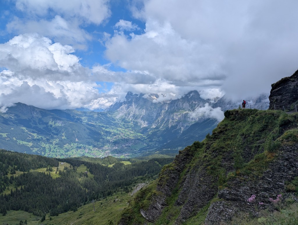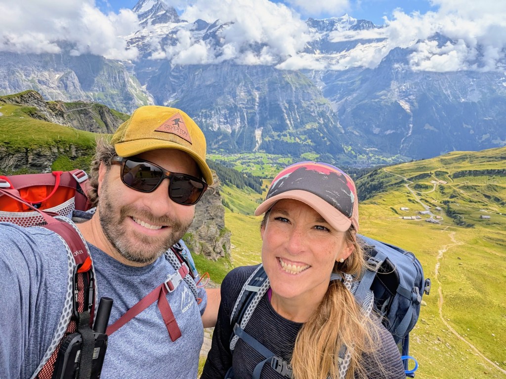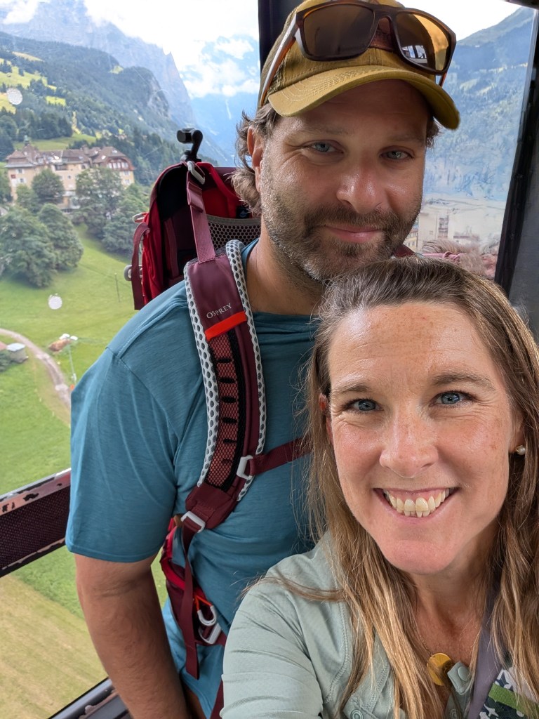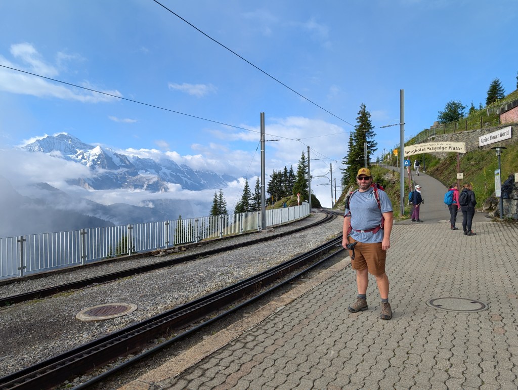 10.5 mi, 2300 ft up and 2800 ft down. We took the packed train of eager hikers early in the morning from Wengen to Schynige Platte. The ride up the mountain was pretty underwhelming as you couldn’t see a thing out the windows, just clouds and clouds. When we got to the top of the platform, the peaks started to poke out and blue sky. A local said to us, ” just wait ten minutes and the views will change.” We may have not seen the amazing jaw dropping views that we were supposed to see on the cliff walk of the mountain, but we still saw some pretty sweet views. We were in Switzerland together in the mountains- nothing better than this!