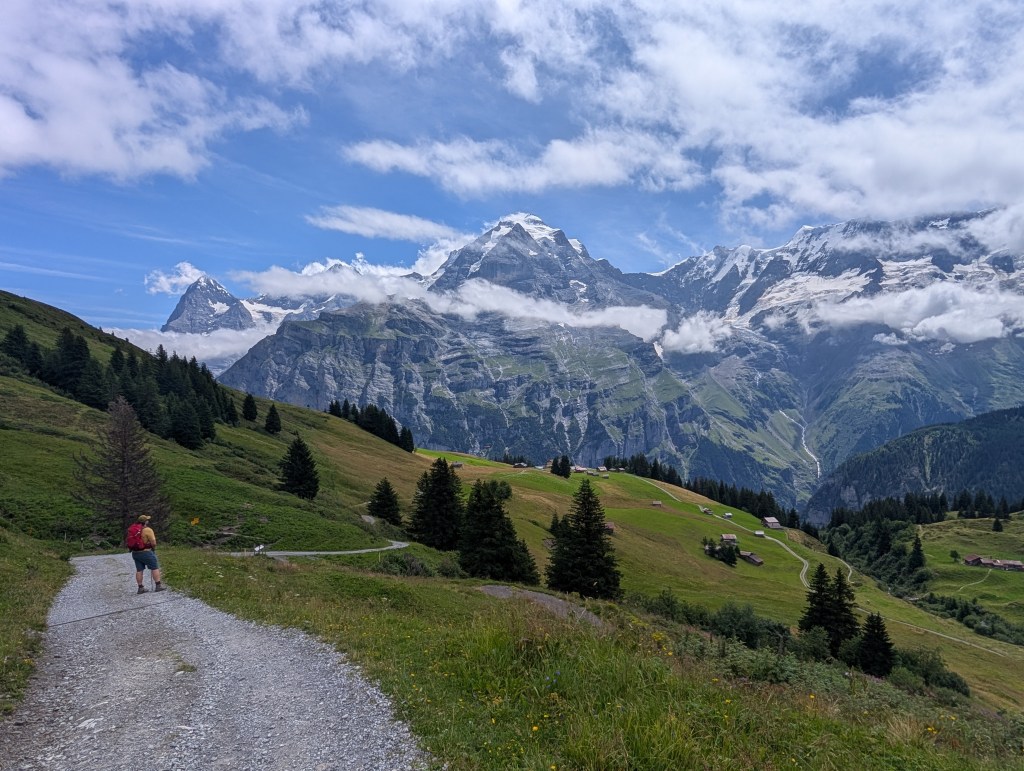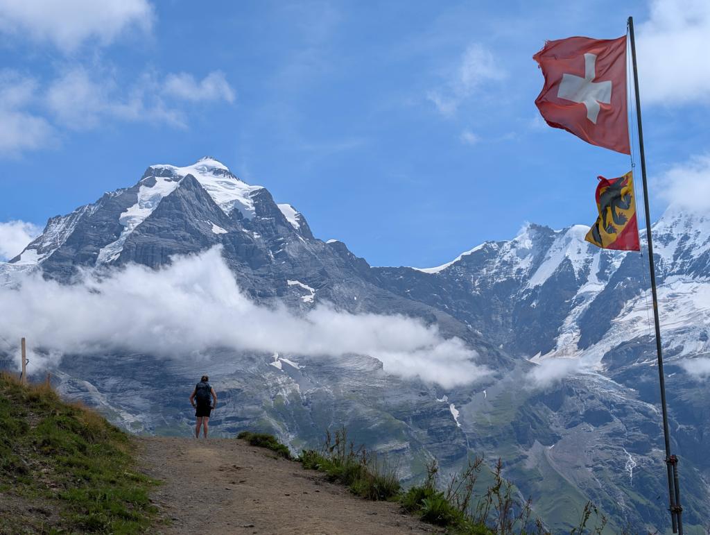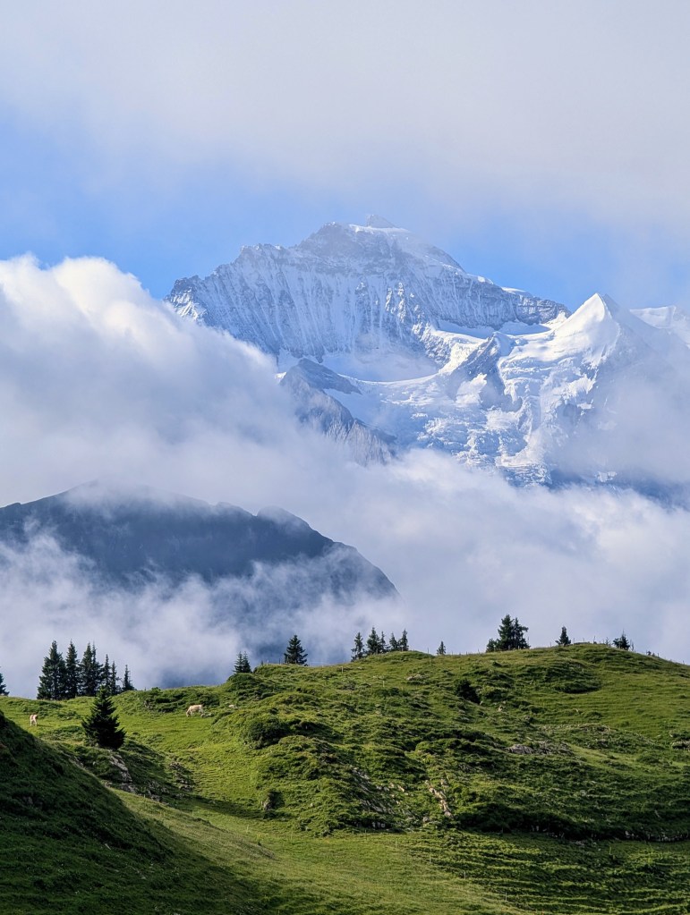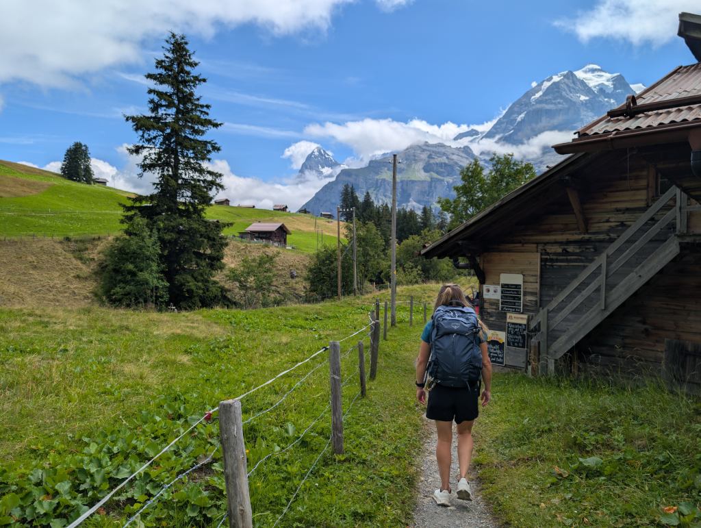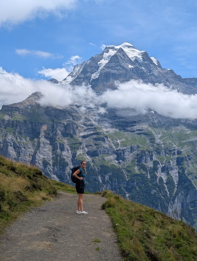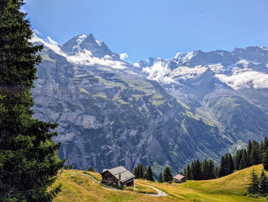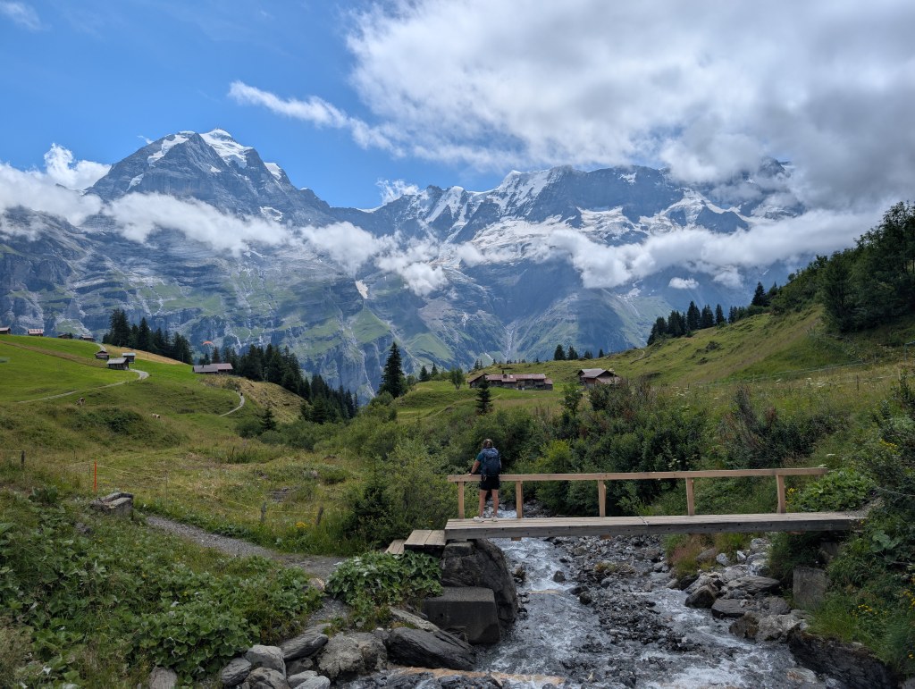 This was one of my favorite hikes and actually one of my most favorite hikes ever! We started in Mürren near the Schilthorn station and hiked uphill for a more challenging experience. We encountered stunning mountain views, expansive fields and huts, a crystal-clear mountain stream, and had some friendly interactions with a cow or two. At the end of our hike we were rewarded with an amazing traditional Swiss lunch and drinks at a local hut.